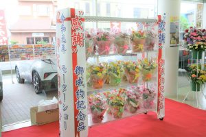 今回のモーターショーでは約4000名の方にご来場をいただき、成約記念品がなくなってしまう程のご成約をいただきました。これもひとえに皆様の暖かいご支援のお陰と心より感謝しております。